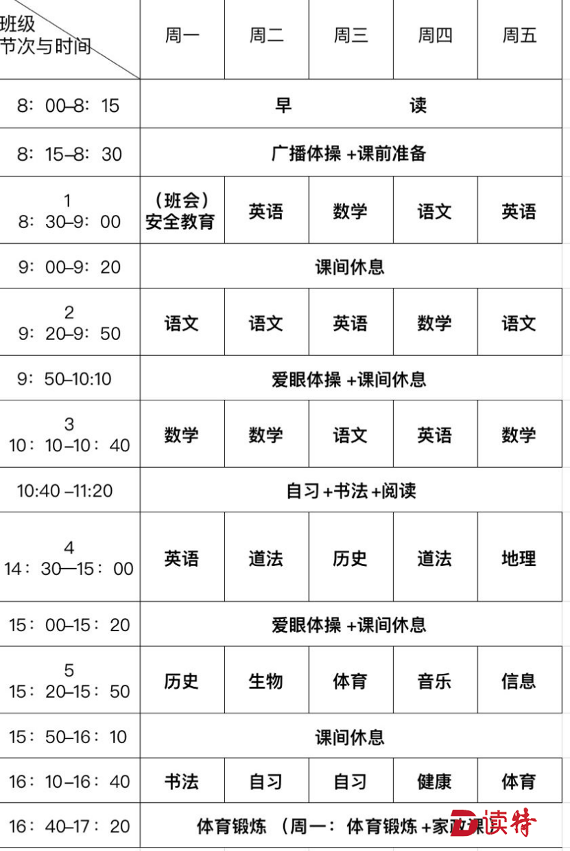 平安里學校初中生覃予墨的網(wǎng)課課程表。