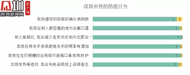 2020年2月9日-11日,深圳疾病預(yù)防控制中心聯(lián)合深圳大學(xué)傳播學(xué)院開展了《深圳市民新冠肺炎調(diào)查》。在三天時間內(nèi)共回收到8179份有效答卷。結(jié)果顯示,深圳市民對于新冠肺炎知識的了解程度達到了較高水平。近8成受訪市民對疫情發(fā)展持積極態(tài)度,超9成受訪市民能做好自我防護,對于病原、疾病的典型癥狀、傳染源特征、洗手的有效預(yù)防性,以及高危人群特征也均超過了95%。