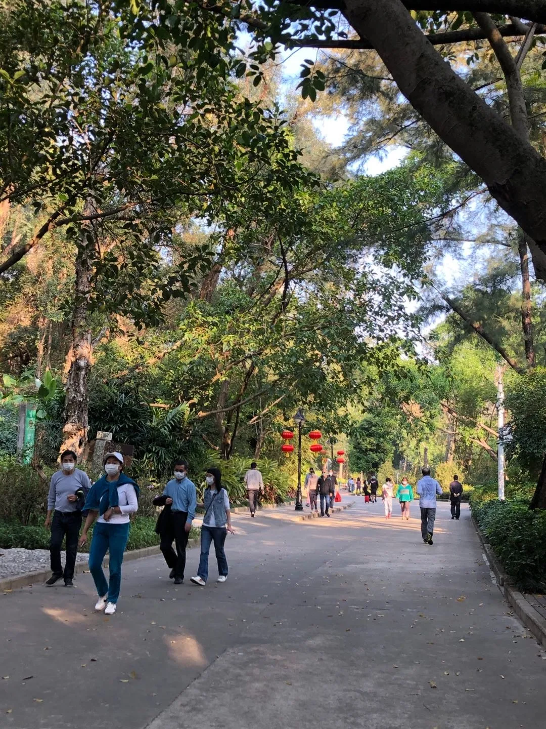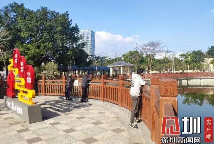在光明區(qū)塘家公園,每隔一小段距離,就有零星幾個當(dāng)?shù)氐娜罕?,在公園的池塘邊觀賞風(fēng)景,散散心,均有佩戴口罩。
