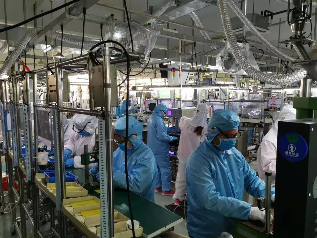 位于福城街道的喬合里科技有限公司有序復(fù)工復(fù)產(chǎn),規(guī)定員工不面對面設(shè)操作臺,不隨意脫下防護(hù)用具,工作期間不串崗、交談。