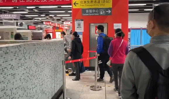 大家隔著安全距離,有序排隊進(jìn)站