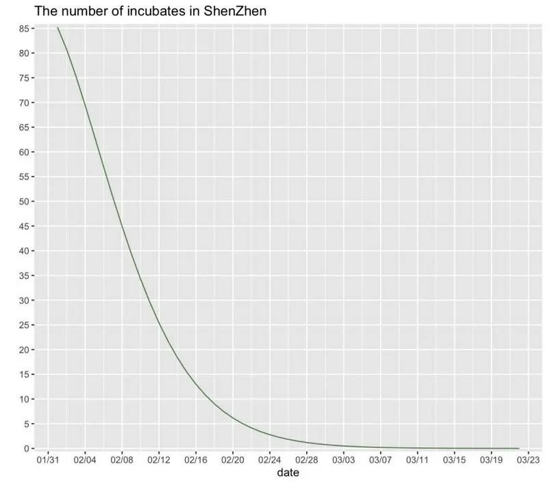 而通過(guò)模擬深圳新冠肺炎每日的潛伏者數(shù)量可以看出,2月份以來(lái)每日的潛伏者數(shù)量在持續(xù)下降,2月18日已降至個(gè)位數(shù),到3月初時(shí)潛伏者將基本清零。說(shuō)明在一系列的防控措施下將病毒傳染的途徑嚴(yán)格控制,很好地防止了病毒的擴(kuò)散。
