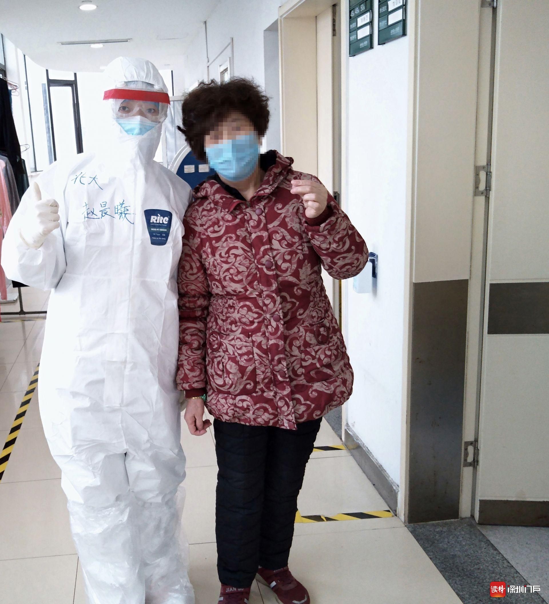 張阿姨和深圳醫(yī)療隊隊員趙晨曦在病區(qū)內(nèi)合影。深圳醫(yī)療隊供圖