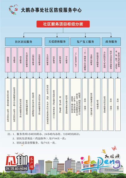 大鵬辦事處各社區(qū)黨群防疫服務(wù)中心通過建立企業(yè)和群眾需求的收集分撥機(jī)制,搭建需求后臺。在收集需求后,由訴求辦理后臺制定每日服務(wù)需求清單,明確每項任務(wù)具體負(fù)責(zé)人和完成時限,確保工作落實到位。