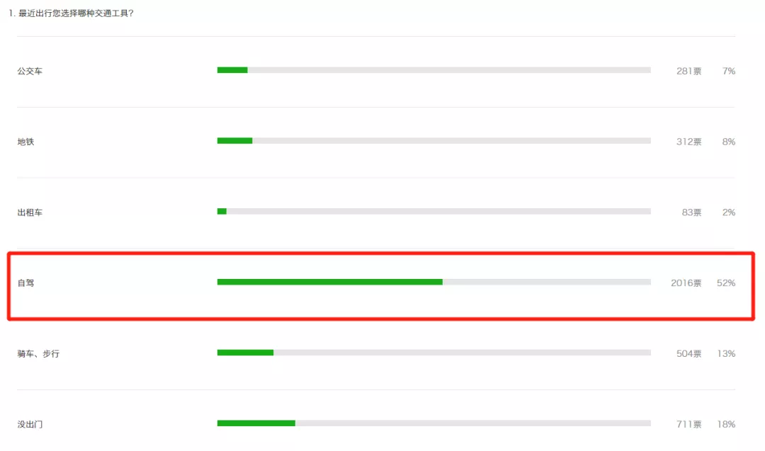 據(jù)不完全統(tǒng)計(jì),現(xiàn)如今52%的市民出行選擇的交通工具為自駕,選擇公交、地鐵以及騎車、步行的人數(shù)加起來僅占28%。