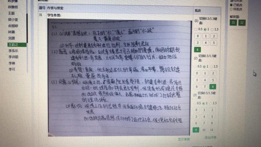 “考試期間,家長(zhǎng)們積極配合監(jiān)考,上傳照片;各班班主任全程陪考,隨時(shí)反饋解決班級(jí)學(xué)生出現(xiàn)的考試問(wèn)題;各備課組老師網(wǎng)上巡考,提醒學(xué)生答題注意事項(xiàng),在線隨時(shí)回答和處理學(xué)生疑問(wèn);平臺(tái)的技術(shù)支持人員全天候?qū)B氃诰€服務(wù),全力解答考試中的技術(shù)問(wèn)題?!倍?shí)高二年級(jí)主任宋德勝告訴記者,兩天的“云考試”,整體非常順利,網(wǎng)絡(luò)平穩(wěn),全年級(jí)395人參加考試,無(wú)一缺考,全部上傳了試卷。他表示,高二年級(jí)作為廣東省首屆新高考改革年級(jí),也成為了這次“云考試”的試點(diǎn)年級(jí),每位學(xué)生的考試科目除語(yǔ)數(shù)外三門(mén)必考,其余根據(jù)自己選科情況六選三,每個(gè)學(xué)生考六科。目前,現(xiàn)在各備課組已經(jīng)投入緊張的閱卷中,確保周五前完成閱卷任務(wù)。
