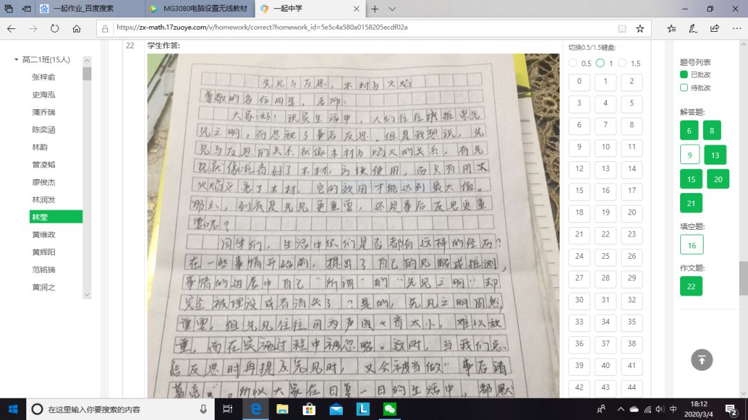 早在網(wǎng)課開(kāi)始第二周,針對(duì)老師們對(duì)網(wǎng)課效率不高的顧慮,高二年級(jí)就做了一次網(wǎng)上調(diào)查,絕大部分老師贊成進(jìn)行一次網(wǎng)上考試,以檢驗(yàn)網(wǎng)課的學(xué)習(xí)效果,以便調(diào)整教學(xué)。之后,學(xué)校開(kāi)始著手準(zhǔn)備網(wǎng)上考試,向技術(shù)平臺(tái)提交學(xué)生和老師信息,下發(fā)《一起作業(yè)學(xué)生注冊(cè)登錄指引》和《一起作業(yè)教師作業(yè)批改操作指南》。年級(jí)各備課組開(kāi)始命題,為了檢驗(yàn)二實(shí)“線上學(xué)堂”的實(shí)效,學(xué)校要求命題的范圍以直播課內(nèi)容為主,兼顧寒假作業(yè)。考前一周,各備課組都上交平臺(tái)進(jìn)行試卷制作。2月26日,網(wǎng)上作業(yè)批改功能正式上線,高二年級(jí)要求備課組在考試之前至少利用線上平臺(tái)布置批改一次網(wǎng)上作業(yè),積累經(jīng)驗(yàn),提醒平臺(tái)改進(jìn)不完善的問(wèn)題,及時(shí)更新,同時(shí)讓學(xué)生和老師熟悉操作技巧。備課組在考前都向?qū)W生發(fā)布了考試注意事項(xiàng),要求學(xué)生豎拍照片,注意字跡大小和拍照清晰度,單題上傳,試卷在閱讀頁(yè)面和題目設(shè)置也做了優(yōu)化,大大方便了學(xué)生答題,有效減輕老師改卷負(fù)擔(dān),提高了閱卷的效率。