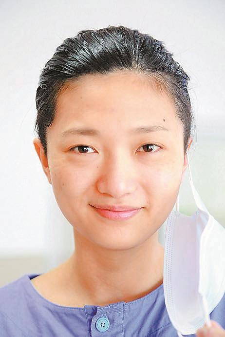 黃青青性格開(kāi)朗,適應(yīng)能力強(qiáng),她平時(shí)不愛(ài)吃的胡蘿卜、包菜等食物,但到了一線再也不挑食了。身材瘦弱的她在忙碌十多天后有些消瘦,但她總是打趣道:“別看我瘦,力量可大著呢!”協(xié)助病人翻身,耐心為病人喂飯,只要病人需要的,她都會(huì)盡自己的全力做好,病區(qū)的病人也為她豎起大拇指。
