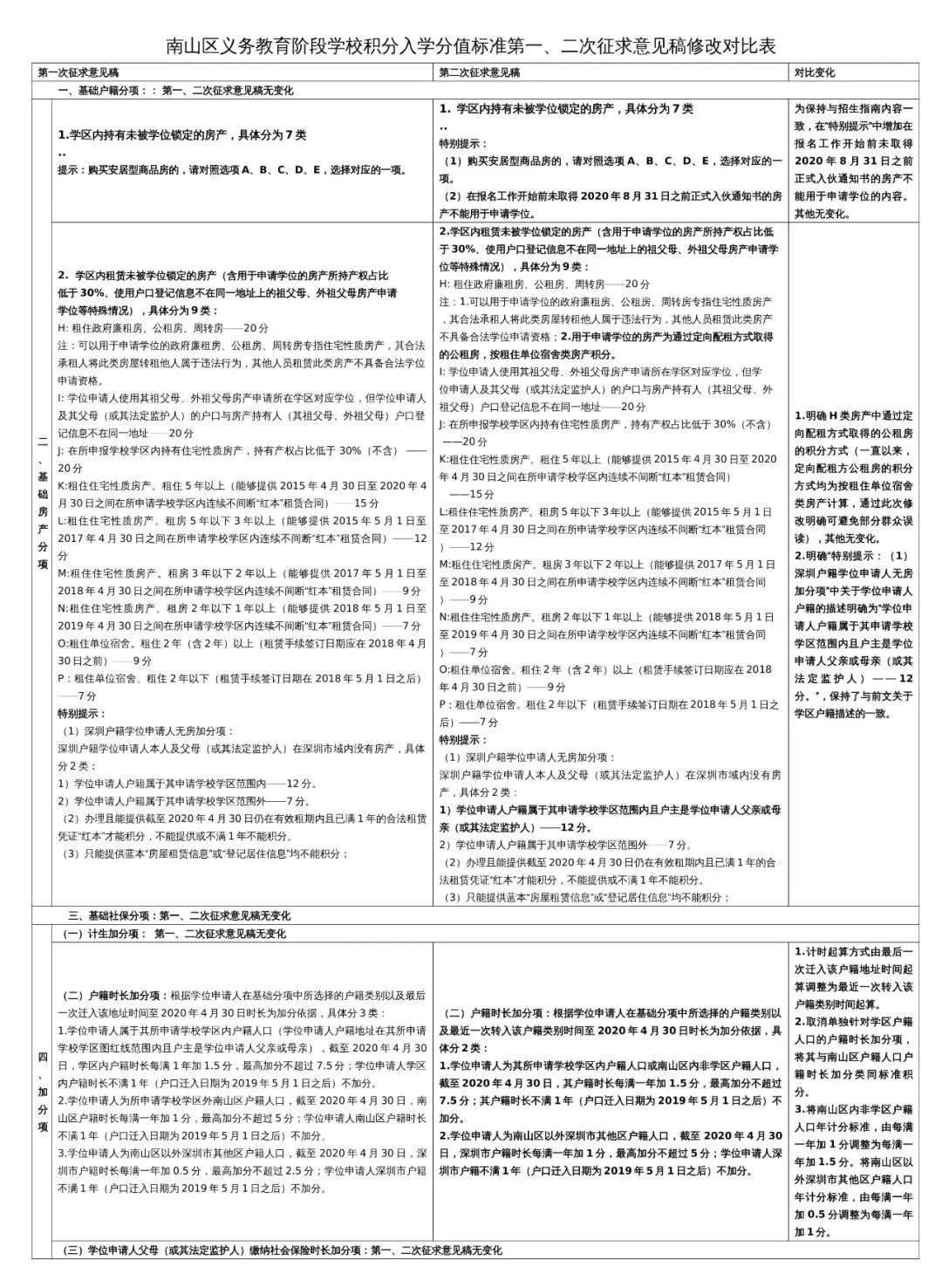1月19日,南山區(qū)教育局第一次征求意見發(fā)出后,共收集到關(guān)于積分算法調(diào)整的反饋意見182條,并于2月10日第二次發(fā)布《南山區(qū)義務教育階段公布學校積分入學實施辦法》征求意見稿(以下簡稱《意見》),根據(jù)《意見》內(nèi)容,擬調(diào)整2020年積分入學辦法。