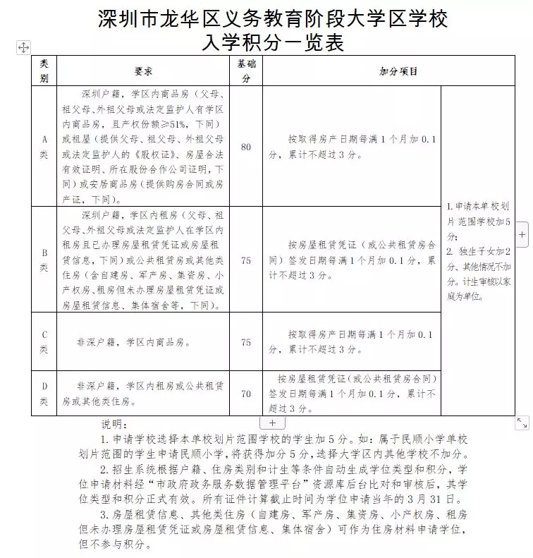 深圳戶籍。申請入學適齡兒童、少年的父母(或法定監(jiān)護人)戶籍遷入深圳時間最長的一方計算積分,每滿一個月加0.1分。