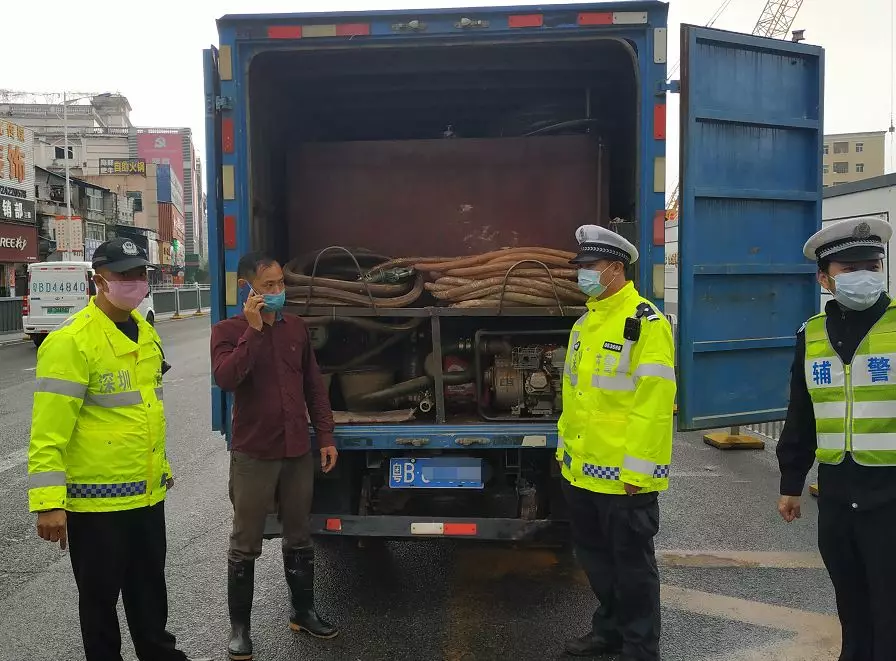 3月9日上午,深圳交警在坪山深汕路六合城路段對過往貨車進行綠碼申報宣傳,一輛粵B號牌輕型廂式貨車引起現場民警注意,執(zhí)勤民警第一時間上前將該車攔至一旁進行調查。