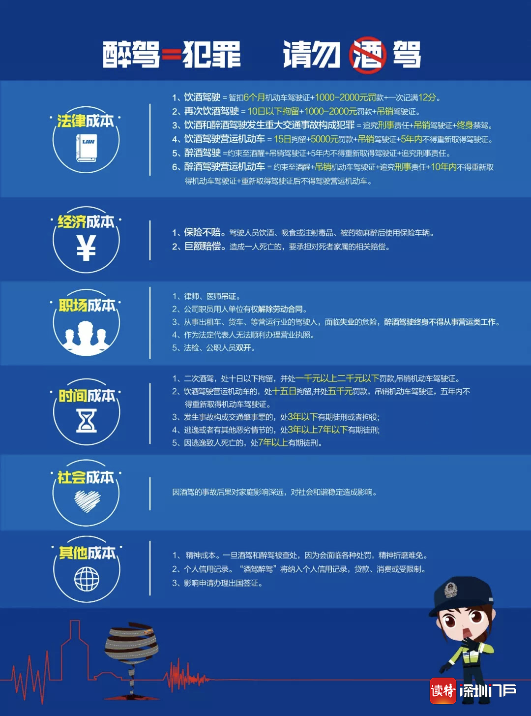 記者了解到,深圳交警對舉報飲酒后駕駛機動車違法行為的市民實施獎勵,市民可撥打110或0755-83333333進(jìn)行舉報。經(jīng)交警查證屬實的,對違法人追究刑事責(zé)任的每宗獎勵3000元,作出行政處理的每宗獎勵1000元。