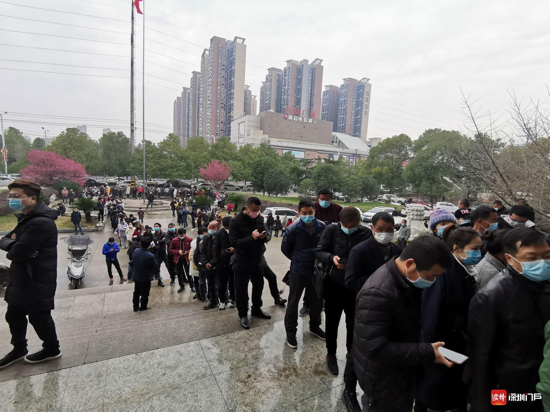 2月23日,監(jiān)利縣交通局門前排隊申請返回工作地的當?shù)厝罕?。不久,湖北再次升級封控措施,直到近日才逐漸恢復正常交通。