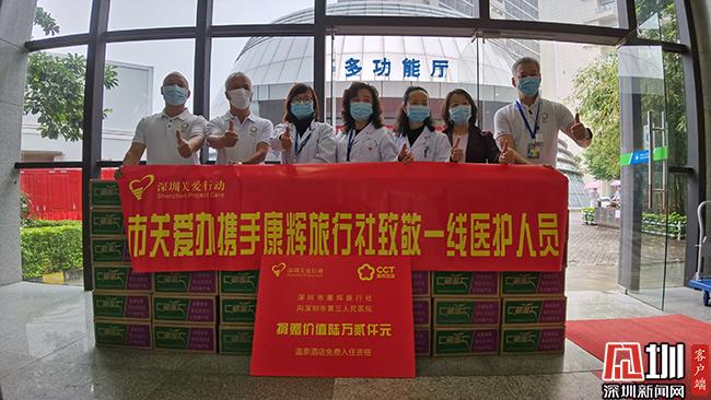 為表達(dá)對(duì)醫(yī)護(hù)人員的感謝,深圳市康輝旅行社捐贈(zèng)價(jià)值6.2萬元的廣東省內(nèi)溫泉酒店免費(fèi)入住券40張。每張入住券可在廣東省內(nèi)指定酒店入住雙床房或大床房?!耙咔槠陂g,我們康輝人一直都在為抗擊疫情獻(xiàn)綿薄之力?!鄙钲谑锌递x旅行社有限公司董事總經(jīng)理滿炎權(quán)告訴記者,在疫情前期,全國(guó)各地醫(yī)用物資告急。各地康輝分公司迅速自我組織、自籌資金,聯(lián)系在國(guó)外的康輝旅行社的領(lǐng)隊(duì)及導(dǎo)游購(gòu)買大量醫(yī)療物資回國(guó)。“現(xiàn)在國(guó)內(nèi)醫(yī)療物資暫時(shí)不缺了,我們深圳康輝送給三院的醫(yī)護(hù)人員溫泉酒店入住券,希望他們?cè)谝咔榻Y(jié)束后,能好好休息?!?/p>