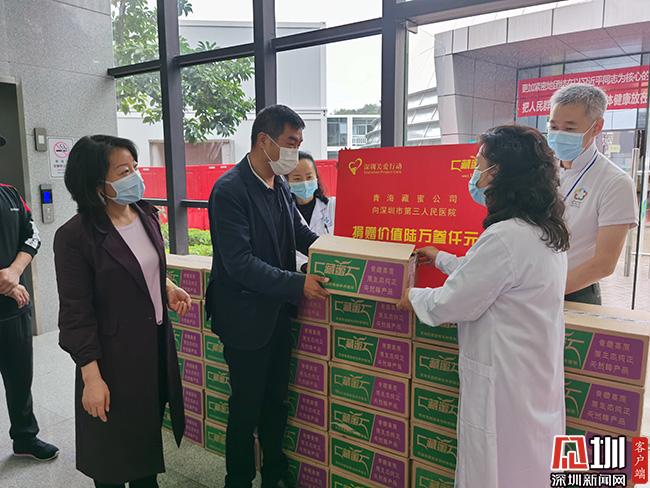 為了向這些最美的逆行者致敬,市關(guān)愛辦攜手愛心企業(yè)青海藏蜜公司與深圳市康輝旅行社,看望慰問一線的醫(yī)務(wù)工作人員。青海藏蜜公司向一線醫(yī)護(hù)人員捐贈(zèng)1500盒青藏高原野花蜜,總價(jià)值6.3萬元。深圳藏蜜營(yíng)銷管理有限公司總經(jīng)理王大鳴動(dòng)情地說,抗擊疫情是一場(chǎng)沒有硝煙的戰(zhàn)役,牽系著所有人的心,因?yàn)獒t(yī)護(hù)人員的日夜守護(hù)與付出,大家才能安心復(fù)工,照常生活。希望醫(yī)護(hù)人員能在勞累之余,泡上一杯蜂蜜水,增強(qiáng)抵抗力,緩解心里壓力,更好地續(xù)航戰(zhàn)斗。