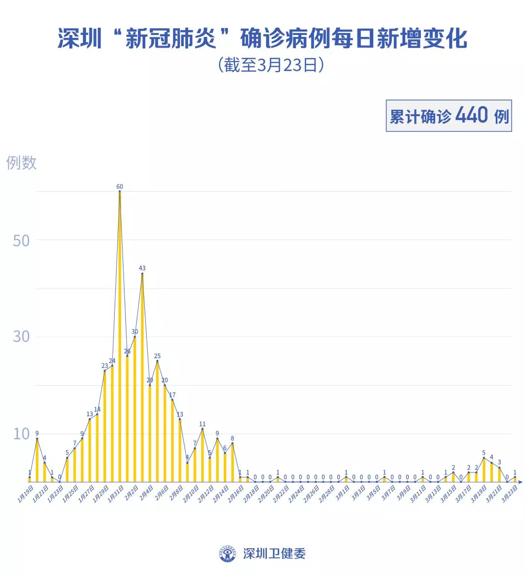 截至3月23日24時(shí),深圳累計(jì)報(bào)告“新冠肺炎”病例440例。3月23日當(dāng)天新增1例,出院1例。