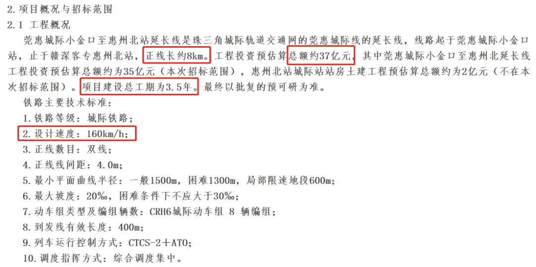 此間公示的莞惠城際小金口至惠州北站延長(zhǎng)線,則是珠三角城際軌道交通網(wǎng)的莞惠城際線的延長(zhǎng)線,線路起于莞惠城際小金口站,止于贛深客?;葜荼闭?,正線長(zhǎng)約8km,設(shè)計(jì)速度為160km/h。工程投資預(yù)估算總額約37億元,其中莞惠城際小金口至惠州北延長(zhǎng)線工程投資預(yù)估算總額約為35億元(本次招標(biāo)范圍),惠州北站城際站站房土建工程預(yù)估算總額約為2億元(不在本次招標(biāo)范圍)。