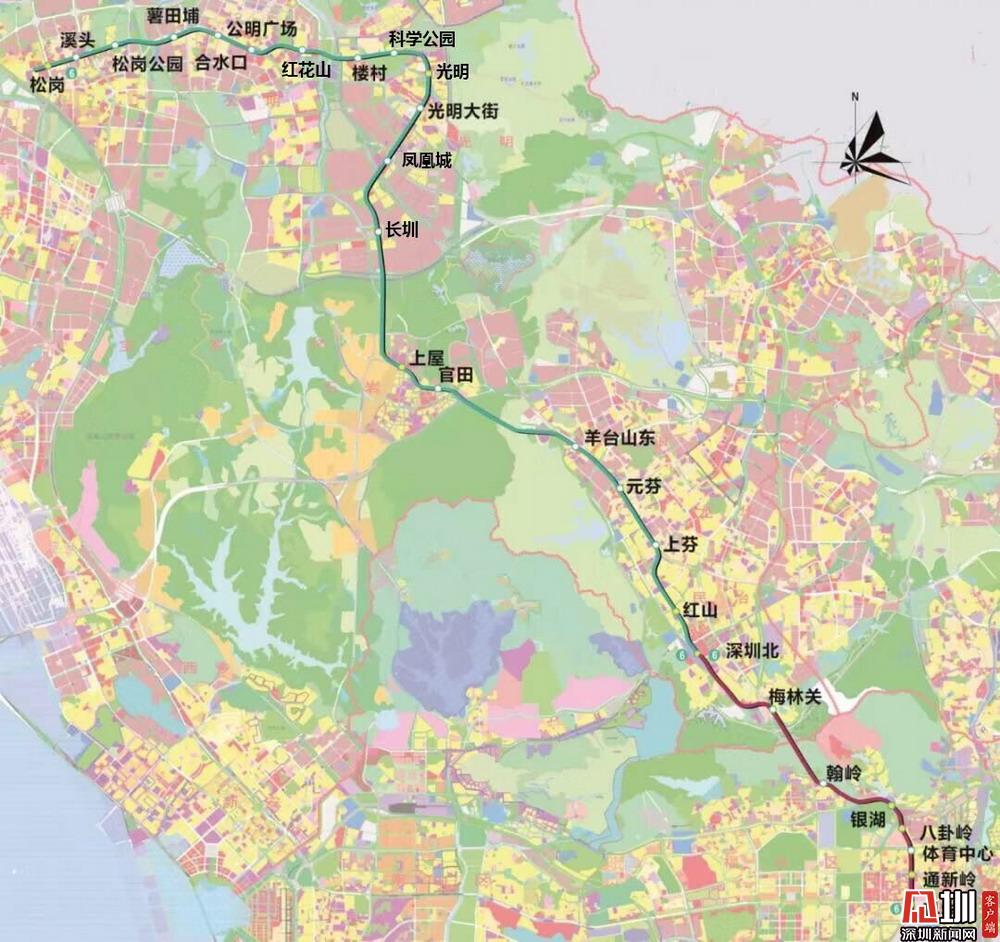 地鐵6號線線路起于松崗站,途經(jīng)寶安區(qū)、光明區(qū)、龍華區(qū)、福田區(qū)、羅湖區(qū),止于科學(xué)館站,大致呈“7形”走向,6號線一二期總長49.396公里,共設(shè)27座車站,全程用時(shí)66分鐘。線路建成后,將帶動(dòng)光明區(qū)和龍華區(qū)發(fā)展、促進(jìn)城市空間結(jié)構(gòu)完善,進(jìn)一步加強(qiáng)與東莞、香港城市軌道交通之間的溝通聯(lián)系,同時(shí)有效緩解深圳北站換乘壓力,加速特區(qū)經(jīng)濟(jì)一體化進(jìn)程。