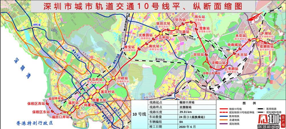 地鐵10號線起于福田口岸站,途經(jīng)福田區(qū)、龍崗區(qū),止于雙擁街站,線路全長29.31公里,共設(shè)24座車站,全部為地下車站。地鐵10號線兼具干線和局域線功能,是深圳市首條南北向采用8A編組的線路,并預(yù)留“南聯(lián)北拓”條件,成為又一條“南北動(dòng)脈”,建成后,福田口岸到平湖僅用45分鐘即可到達(dá),將大大緩解福田中心區(qū)至坂田段的交通壓力。