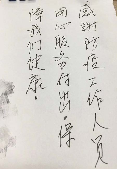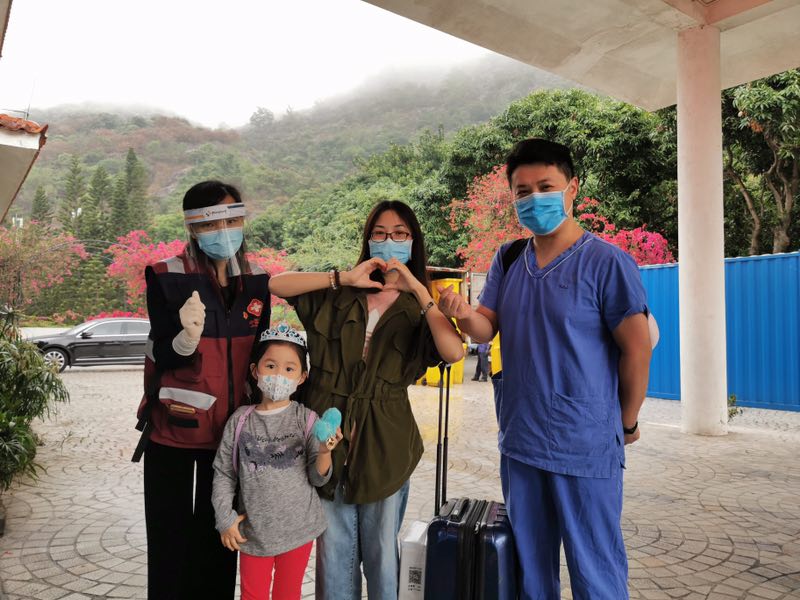 每當看到了一批批解除隔離的人開開心心地收拾行李回家,看到客人留下的感謝信、微信留言,尤其是聽到客人們離開時一句句真摯的話語,同事們都倍感欣慰,更加堅信風雨過后,終會見到彩虹。