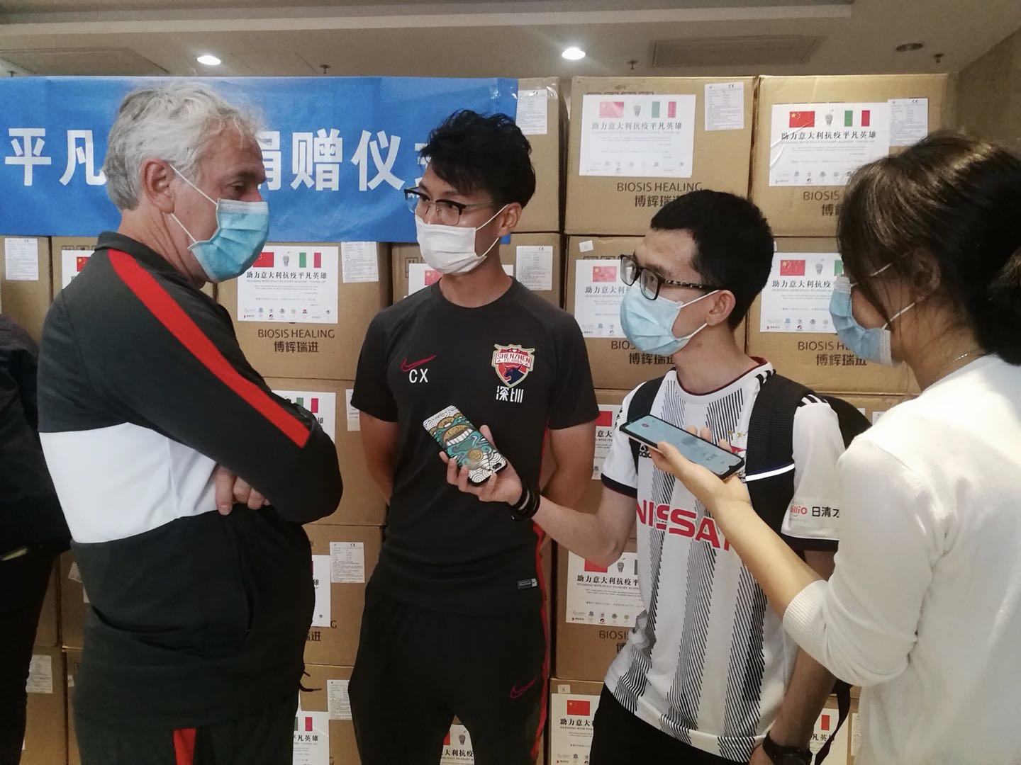 “感謝深圳?!碑斕欤珹C米蘭俱樂部前教練、深圳佳兆業(yè)足球隊主教練多納多尼作為在深意大利人代表也來到了活動現(xiàn)場。他表示,來深圳不到一年,已經深刻感受到深圳的城市魅力?!爸袊谶@次抗擊疫情的過程中表現(xiàn)完美,每個人的一舉一動不僅是為自己,更是為別人,這非常令我感動。此次捐贈對于意大利來說十分重要,我代表我的祖國向大家表示由衷的感謝?!倍嗉{多尼在現(xiàn)場動情地說。(記者 許舜鈿)