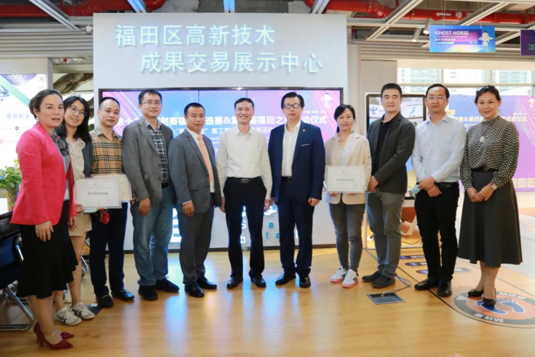 隨后,范坤與福田區(qū)科技創(chuàng)新局局長張忠暉等共同上臺(tái)啟動(dòng)第十二屆深創(chuàng)賽福田預(yù)選賽暨第四屆“福田之星”大賽,同時(shí)為福田高科館授予“福田科技港灣”牌匾。