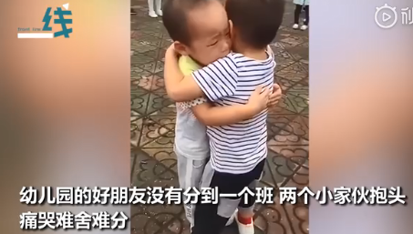 問號都隨著眼淚被沖走了!臨開學,兩個好朋友因為不能在一個班上學抱頭痛哭