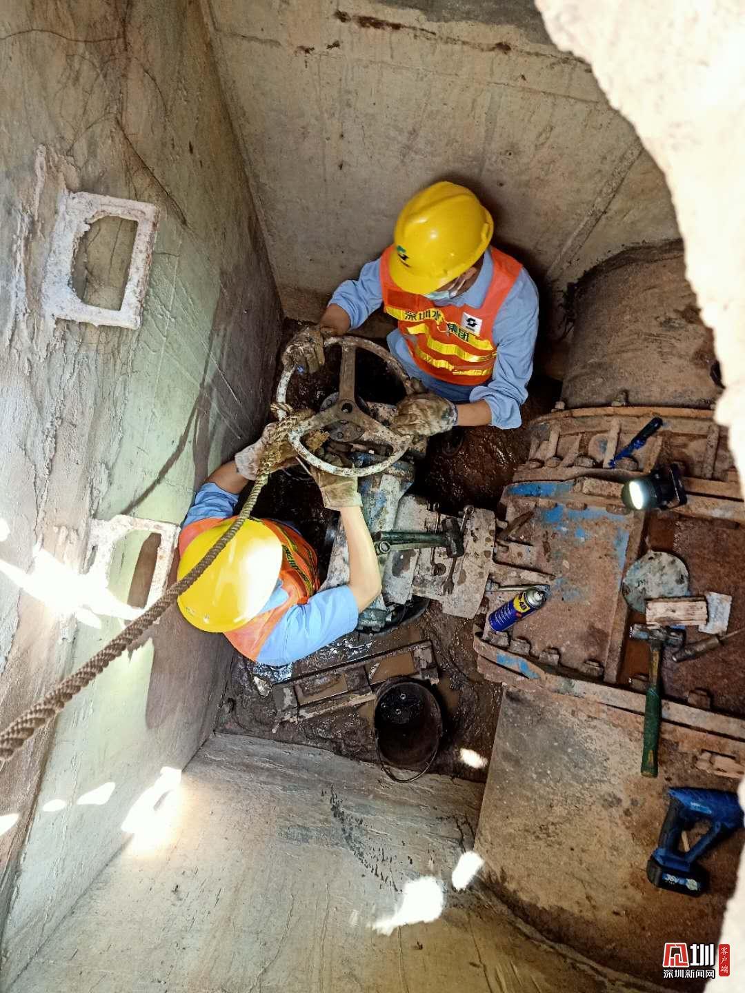 閥門(mén)檢測(cè)及維修分公司維修工何水懷和黃伯良,正緊急更換閥門(mén)。