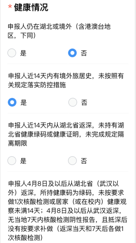 見圳客戶端·深圳新聞網(wǎng)2020年5月2日訊 深圳初三高三的學(xué)長學(xué)姐們已經(jīng)返校了,非畢業(yè)班的學(xué)弟學(xué)妹們接下來也將陸續(xù)返校。據(jù)深圳市教育局消息,5月2日(今天)開始,師生要在“深i您-自主申報”平臺的開學(xué)專區(qū)進行健康信息申報,符合條件的才可以返校。