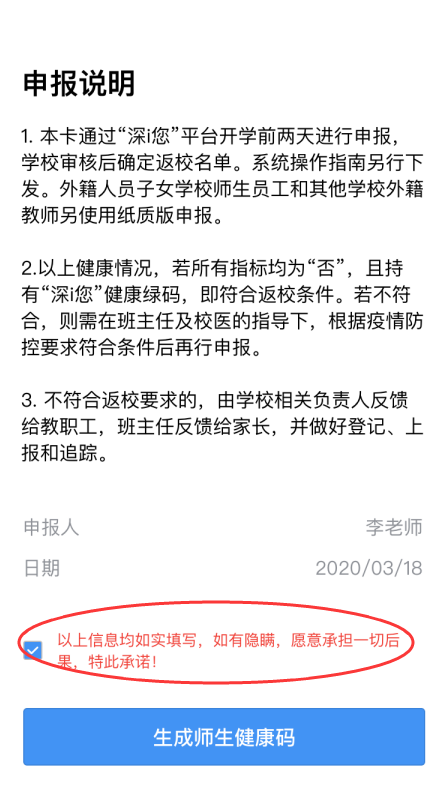 見圳客戶端·深圳新聞網(wǎng)2020年5月2日訊 深圳初三高三的學(xué)長(zhǎng)學(xué)姐們已經(jīng)返校了,非畢業(yè)班的學(xué)弟學(xué)妹們接下來也將陸續(xù)返校。據(jù)深圳市教育局消息,5月2日(今天)開始,師生要在“深i您-自主申報(bào)”平臺(tái)的開學(xué)專區(qū)進(jìn)行健康信息申報(bào),符合條件的才可以返校。
