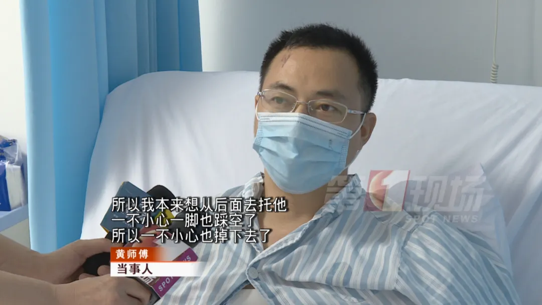 記者在病房見(jiàn)到了救人受傷的黃師傅。他說(shuō)當(dāng)時(shí)一心只想著救人,忽略了做好安全措施。