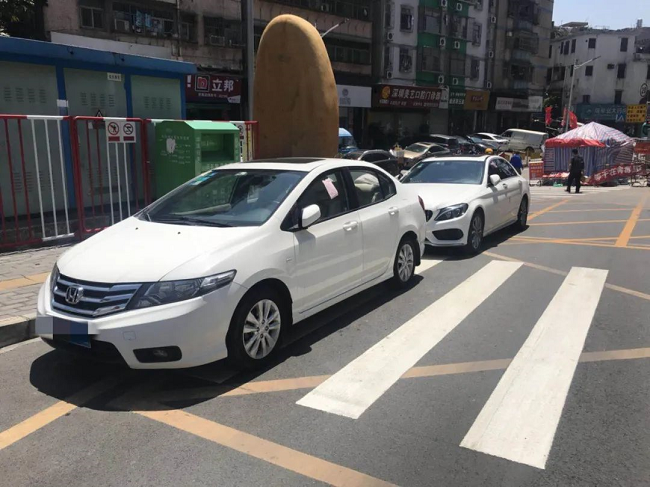 黃方格、人行道、公交站臺(tái)等區(qū)域禁止停車(chē)。