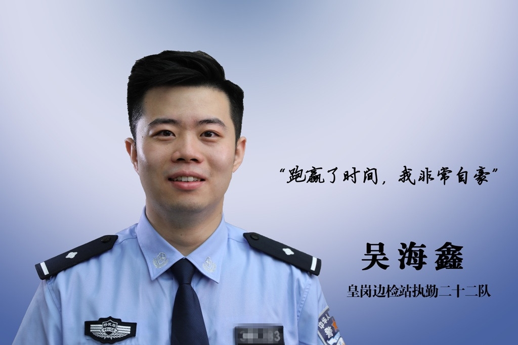 民警吳海鑫:空曠口岸的每一寸土地,每日步巡的他都用雙腳丈量,他記不清多少次引導(dǎo)救護車進入皇崗口岸,搭起深港“生命線”?!芭苴A了時間,我非常自豪。”