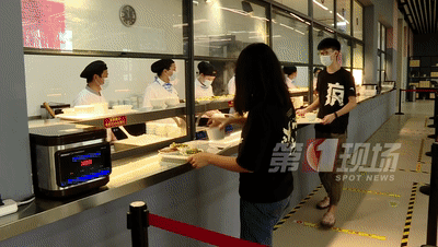 目前,學校的單體建筑均實行封閉式管理,食堂座位也錯開擺放并設置了隔板,讓同學們分散就餐。