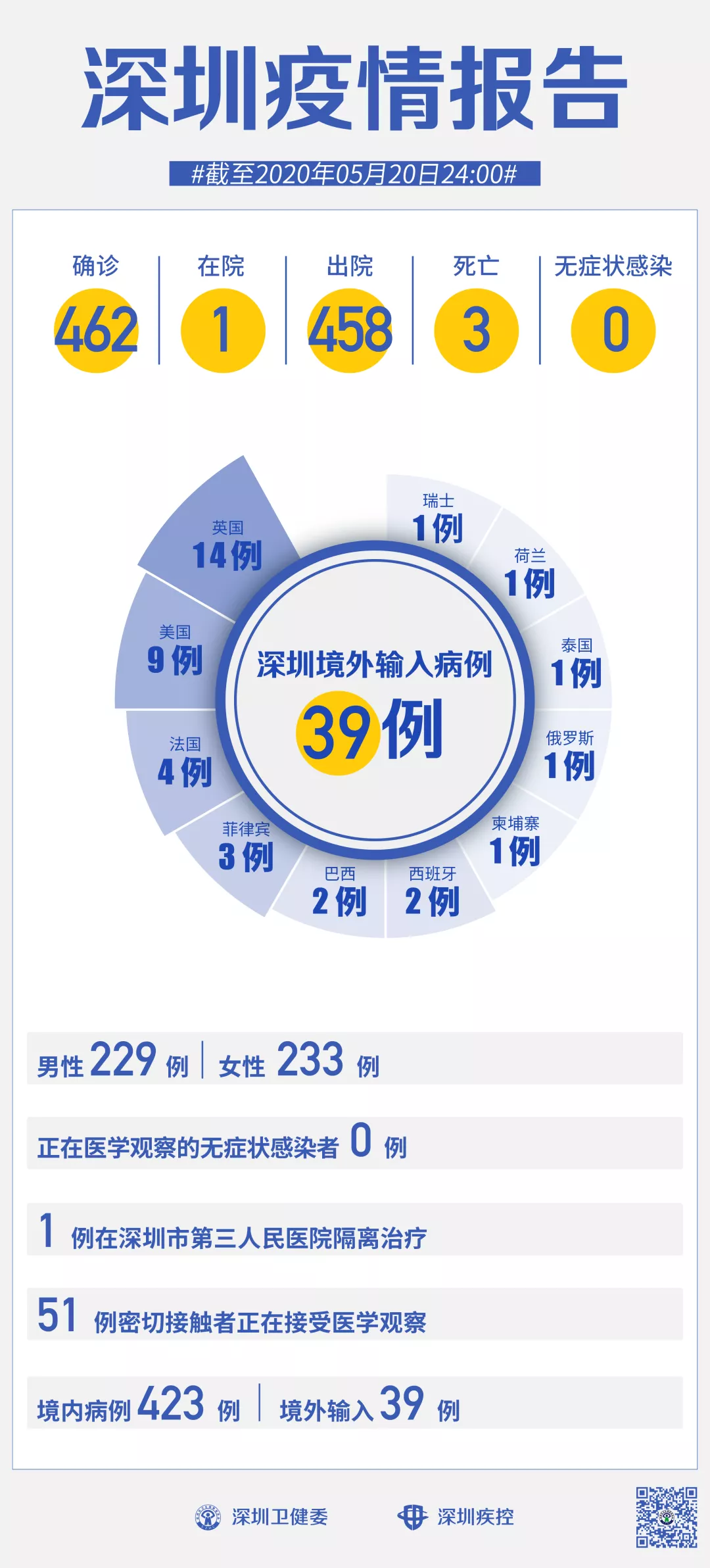 截至5月20日24時,深圳累計報告新冠肺炎病例462例。