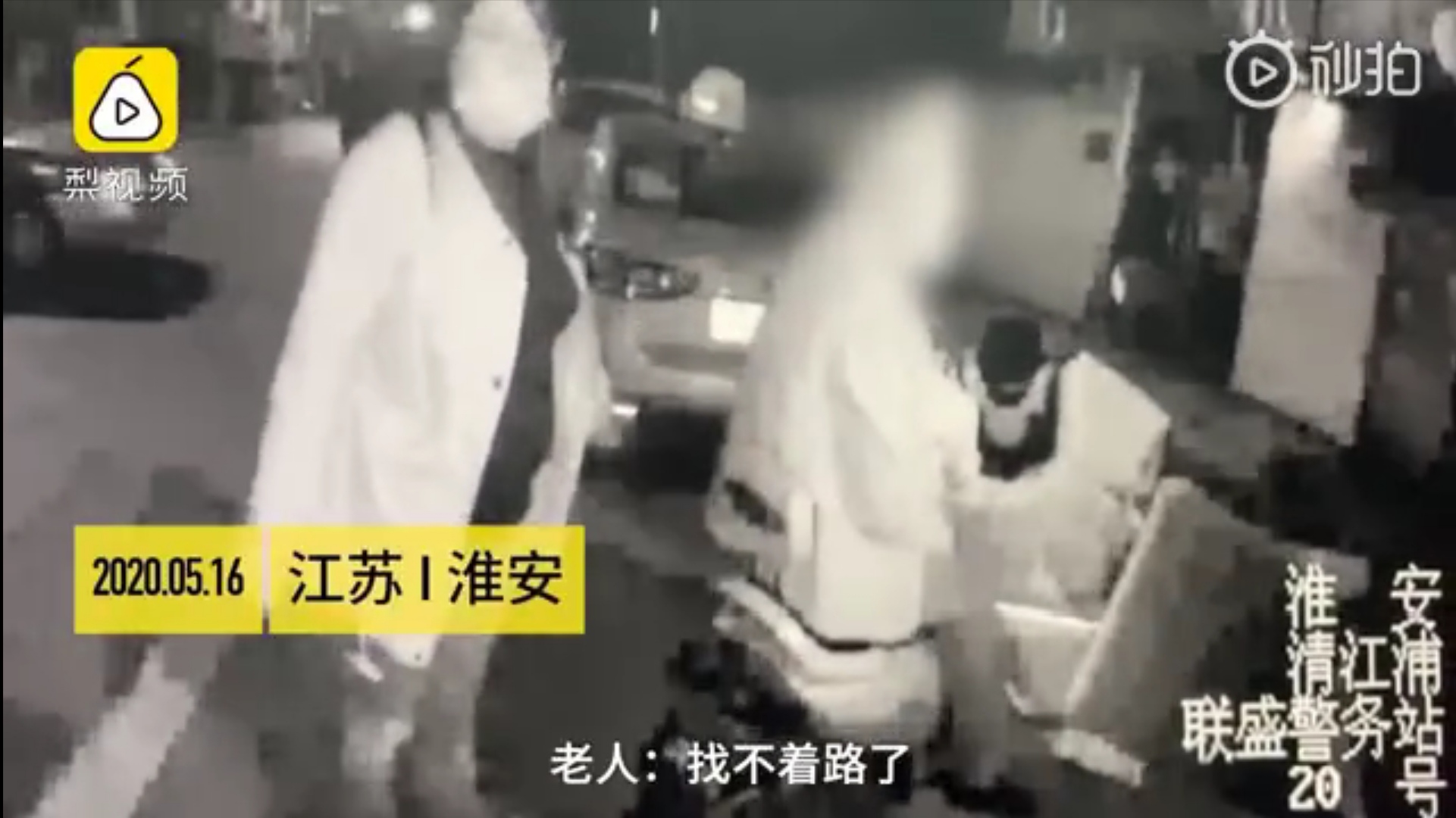 江蘇淮安市民李女士發(fā)現(xiàn)一位老人獨自在市區(qū)行走