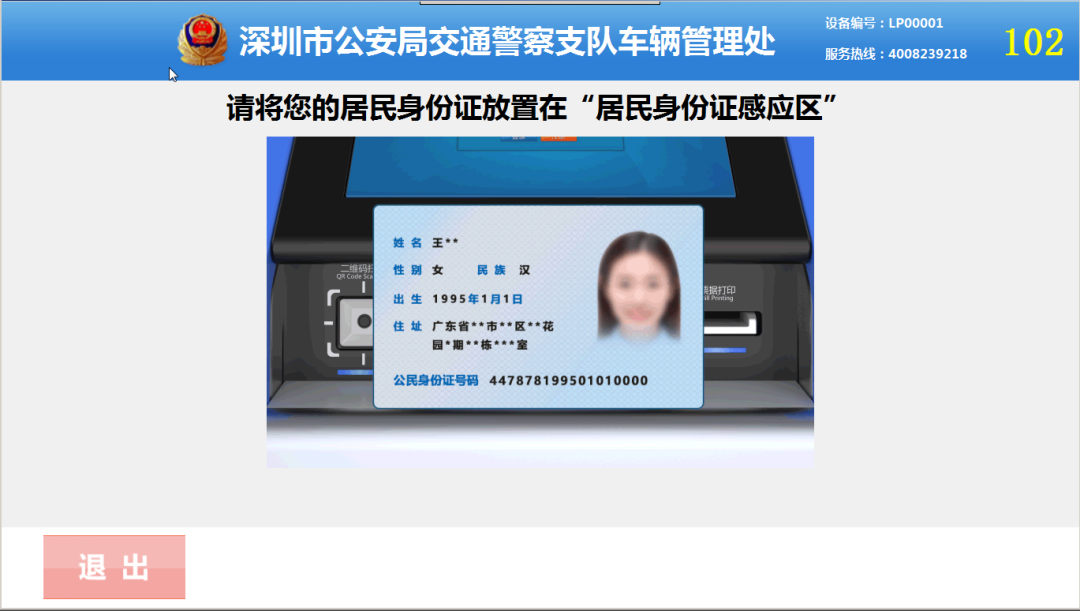 將身份證放置在讀取區(qū)內(nèi)進行身份證信息讀??;