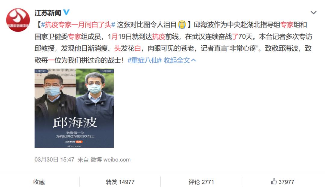 這是此前因“一月白頭”被網(wǎng)友熟知的國家衛(wèi)健委救治專家組成員、東南大學附屬中大醫(yī)院副院長邱海波。