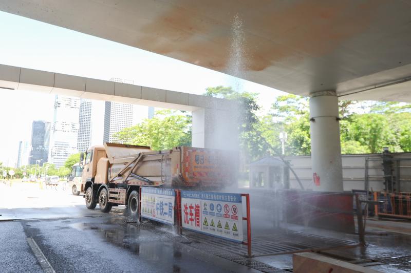 相信很多市民朋友對自卸車(俗稱“泥頭車”)的印象就是又吵又臟,對此記者在現(xiàn)場看到,福田區(qū)的工地已經用上電動自卸車,跟燒柴油的自卸車相比,不僅節(jié)能環(huán)保,且車子運行的噪音也非常小。不僅如此,為了防止自卸車“帶泥上路”,工地的出口處還設有車輛自動沖洗系統(tǒng),每輛泥頭車在駛出工地之前,都要經歷一次“全身淋浴”,徹底沖干凈車身以及輪胎上的泥土之后才能離開。
