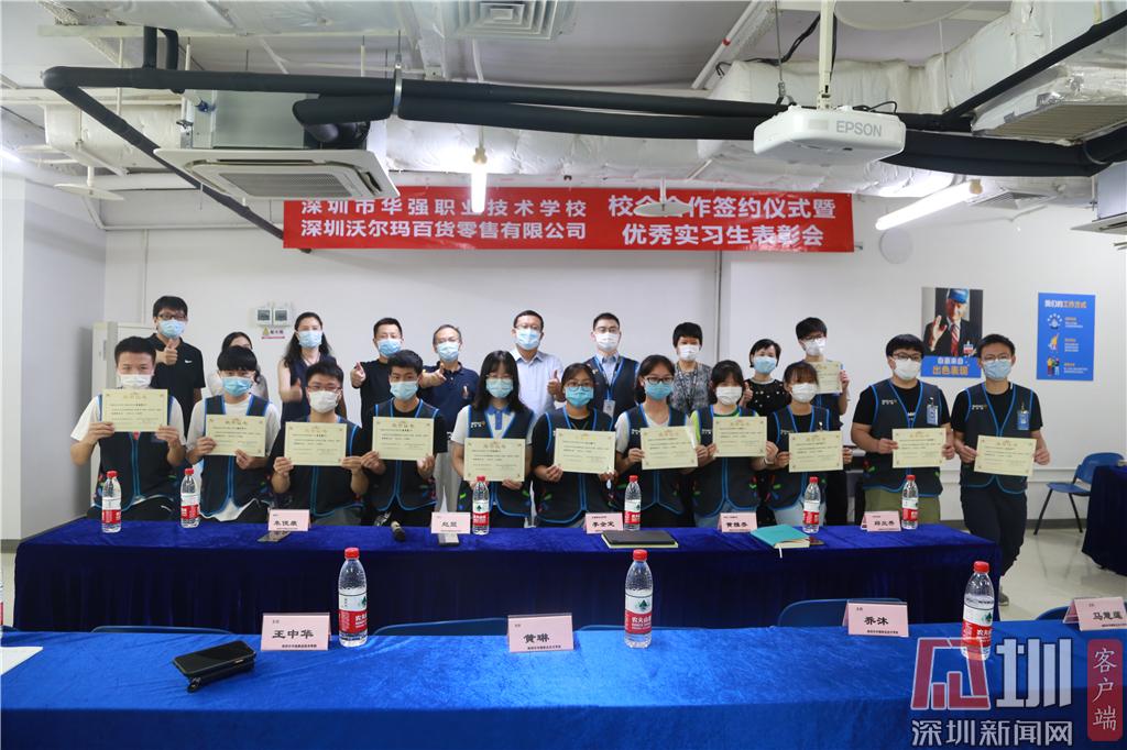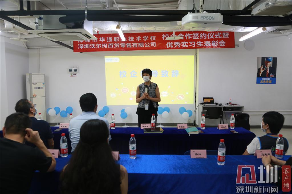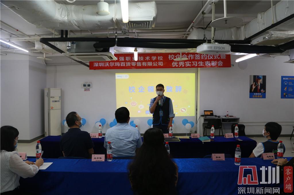 見圳客戶端·深圳新聞網(wǎng)2020年6月24日訊(記者 曹園芳 通訊員 沈琳 喬沐)昨天下午,深圳市華強職業(yè)技術(shù)學(xué)校與深圳沃爾瑪百貨零售公司簽訂校企合作協(xié)議。趙盟校長、朱俊康副校長、西校區(qū)王中華主任、校企合作辦黃琳主任、商貿(mào)部喬沐部長、財經(jīng)部馬慧連副部長、辦公室沈琳老師及學(xué)校優(yōu)秀實習(xí)生代表出席了簽約儀式暨優(yōu)秀實習(xí)生表彰會。