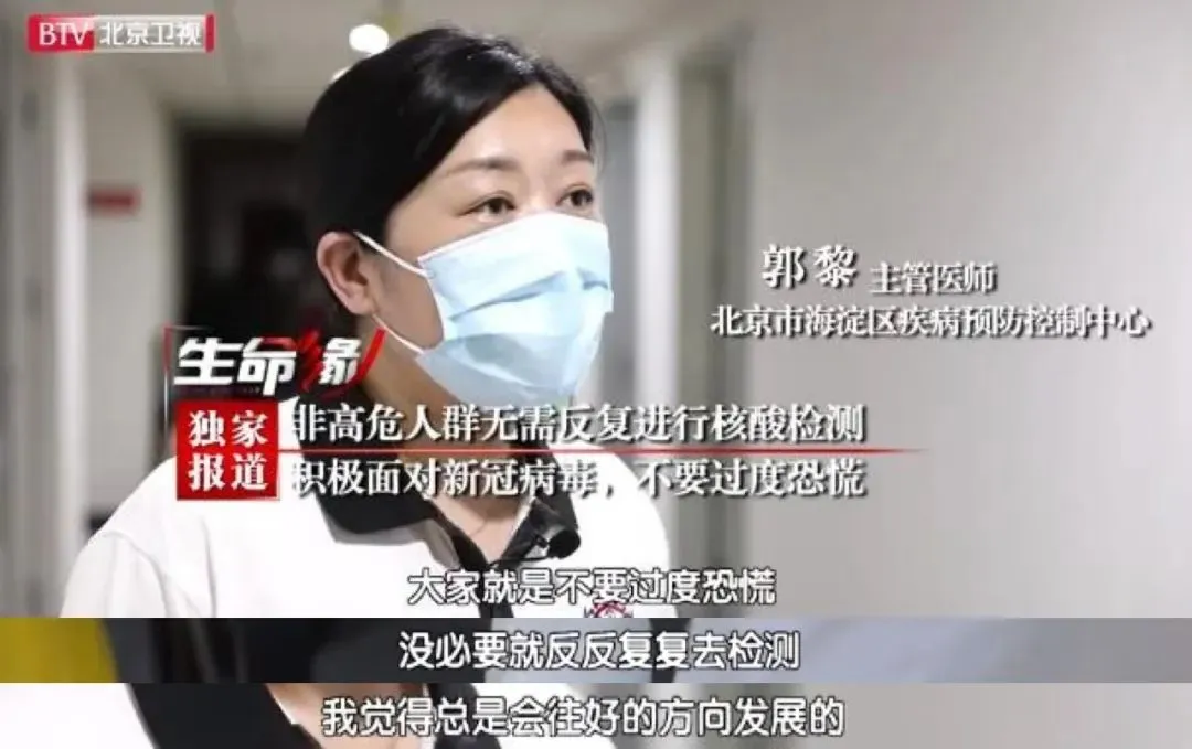 北京市海淀區(qū)疾控中心主管醫(yī)師郭黎認為:如果確定自己沒有接觸過確診病例、疑似病例,也不是密切接觸者的密接,同時不屬于應檢盡檢的幾類人群,又沒有出現(xiàn)發(fā)燒、咳嗽等相關的呼吸道癥狀,就沒必要反反復復進行核酸檢測。