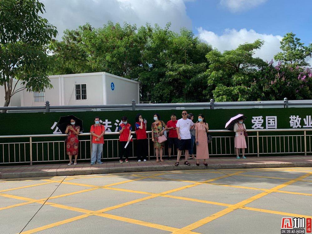 【紅嶺中學】在考點穿著紅色衣服等待考生的家長們。