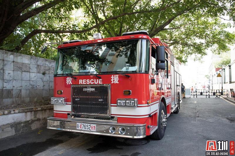 深圳中學(xué)考點(diǎn)外待命的消防救援車。