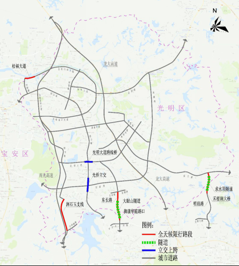其中,松白路、重慶路、光明大道未列入寶安、光明區(qū)電動(dòng)二輪車禁行道路。
