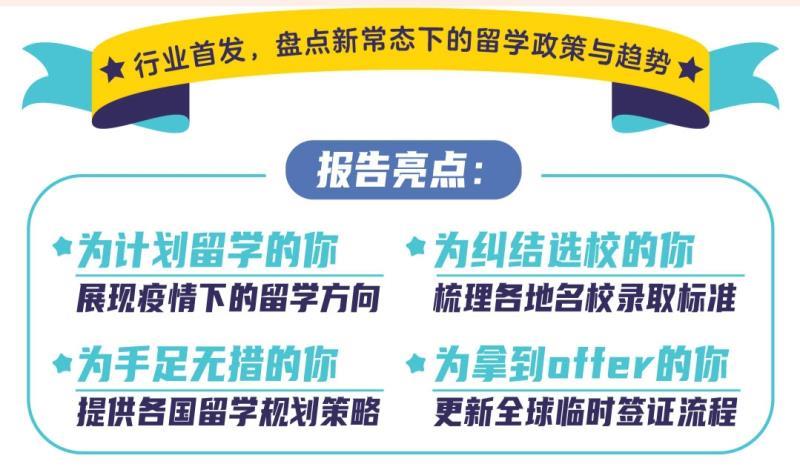 在數(shù)字網(wǎng)絡(luò)化技術(shù)加強(qiáng)全球合作的大背景下,人才的全球化早已成為時(shí)代的必然要求。然而面對(duì)今年疫情帶來(lái)的變動(dòng),當(dāng)下留學(xué)規(guī)劃如何破局、高考后全球升學(xué)有機(jī)會(huì)嗎、留學(xué)生就業(yè)變化在哪等問(wèn)題,也成為留學(xué)家庭關(guān)心的重點(diǎn)。為幫助更多留學(xué)生家庭全面盤點(diǎn)新常態(tài)下的留學(xué)政策與趨勢(shì)、梳理最新錄取標(biāo)準(zhǔn)、做好“學(xué)業(yè)”“安全”雙重保障,7月18日09:00-10:00啟德教育還將在線重點(diǎn)發(fā)布《新常態(tài)下的留學(xué)現(xiàn)狀報(bào)告》,這也將是留學(xué)行業(yè)相關(guān)報(bào)告的首次發(fā)布。