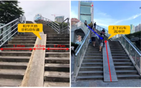考慮非機(jī)動(dòng)車過街的實(shí)際需求,在和平路跨線橋增設(shè)非機(jī)動(dòng)車通道。