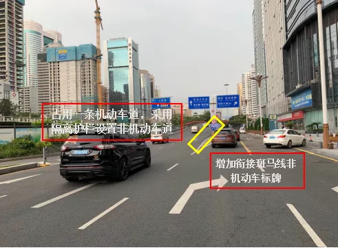 下一步,市交通運(yùn)輸局羅湖管理局將考慮在深南路新秀跨線橋、彩虹橋、文錦北路太白路口地下通道和望桐路華英學(xué)校路段等道路,將和平橋路跨線橋整治經(jīng)驗(yàn)應(yīng)用于以上路段的機(jī)非混行改善工作當(dāng)中,整體看一下高架“非機(jī)”設(shè)置前后的區(qū)別。