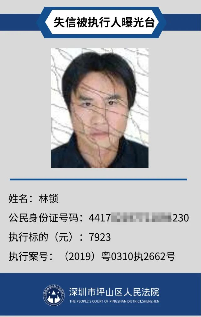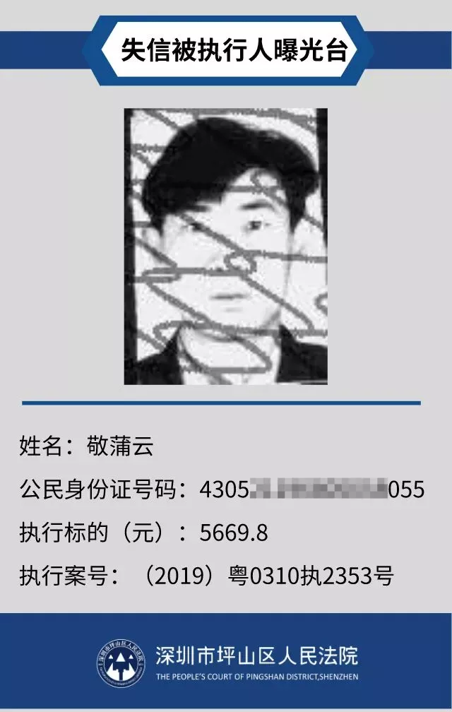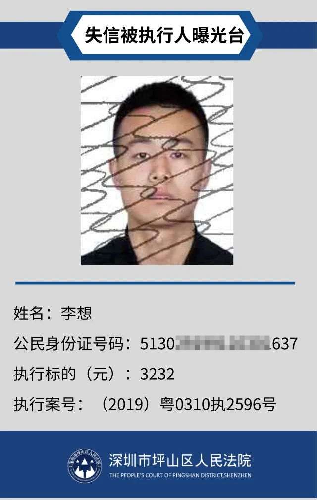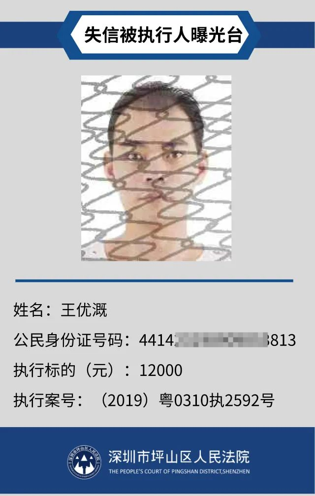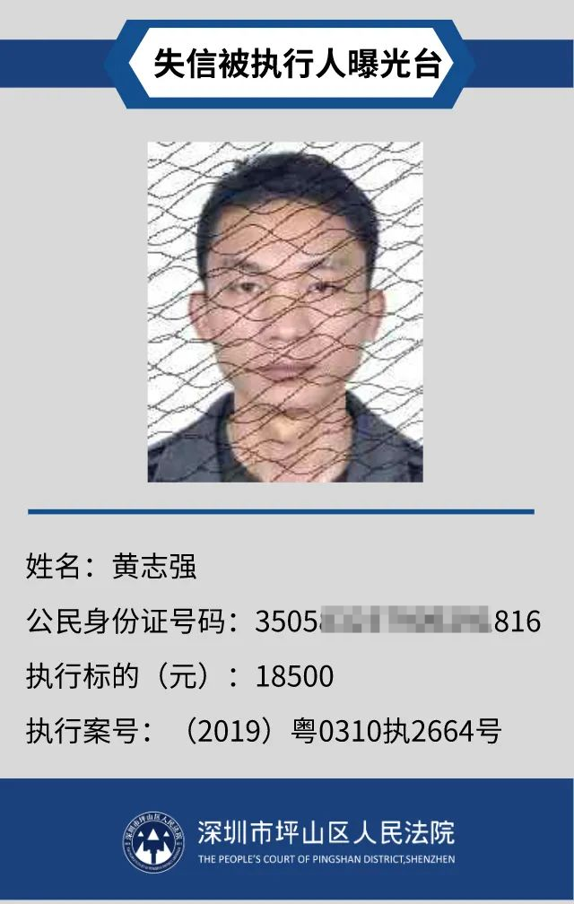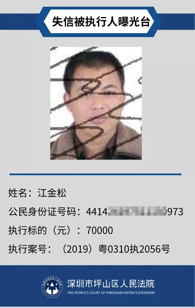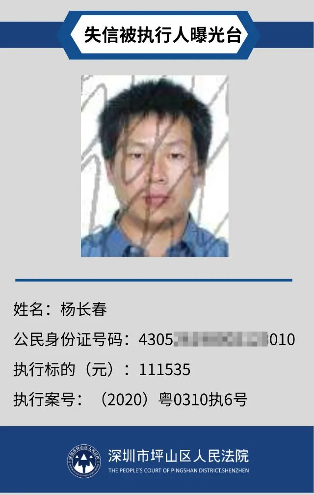 為督促被執(zhí)行人自覺履行生效法律文書確定的義務(wù),推進(jìn)社會誠信體系建設(shè),深圳市坪山區(qū)人民法院根據(jù)《中華人民共和國民事訴訟法》第二百五十五條、《最高人民法院公布失信被執(zhí)行人名單信息若干規(guī)定》第一條和第七條之規(guī)定,現(xiàn)對31名失信被執(zhí)行人予以公布。名單信息根據(jù)案件結(jié)案情況及時更新,歡迎舉報失信被執(zhí)行人行蹤及財產(chǎn)線索,相關(guān)信息核實請聯(lián)系深圳市坪山區(qū)人民法院執(zhí)行局。