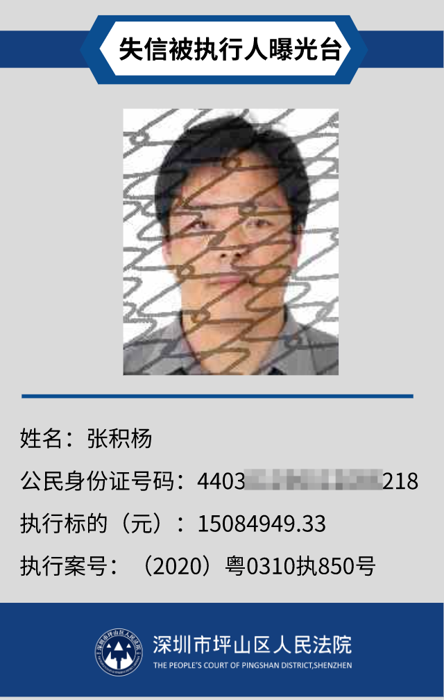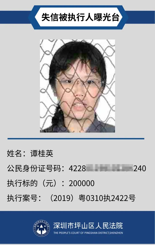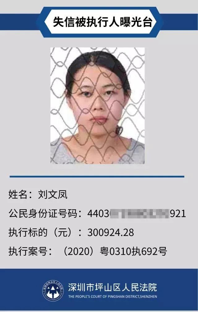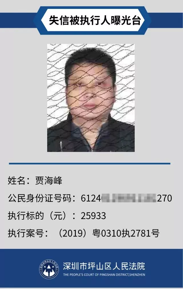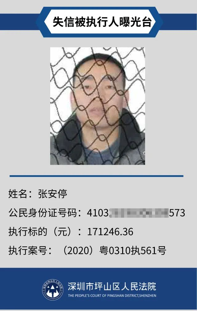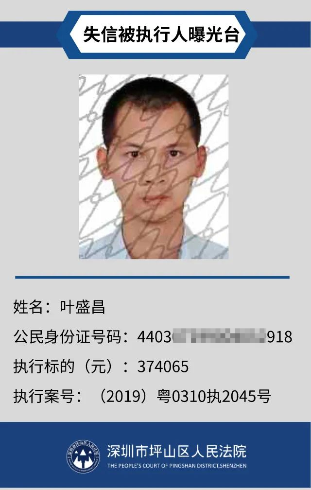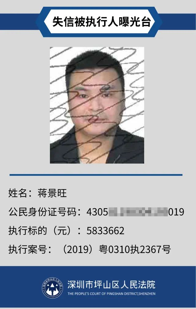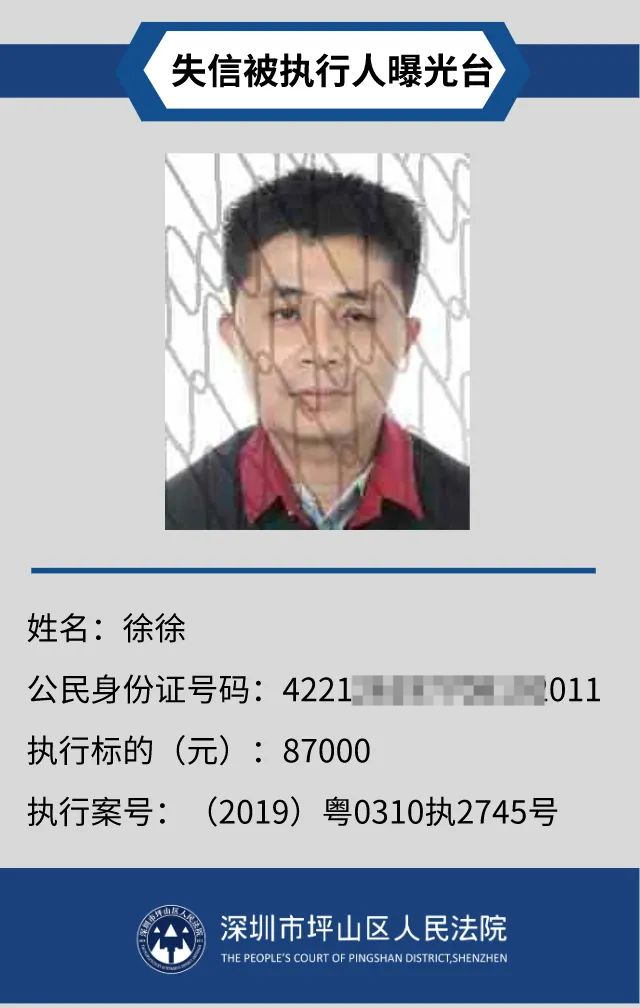 為督促被執(zhí)行人自覺履行生效法律文書確定的義務(wù),推進(jìn)社會誠信體系建設(shè),深圳市坪山區(qū)人民法院根據(jù)《中華人民共和國民事訴訟法》第二百五十五條、《最高人民法院公布失信被執(zhí)行人名單信息若干規(guī)定》第一條和第七條之規(guī)定,現(xiàn)對31名失信被執(zhí)行人予以公布。名單信息根據(jù)案件結(jié)案情況及時更新,歡迎舉報失信被執(zhí)行人行蹤及財產(chǎn)線索,相關(guān)信息核實請聯(lián)系深圳市坪山區(qū)人民法院執(zhí)行局。