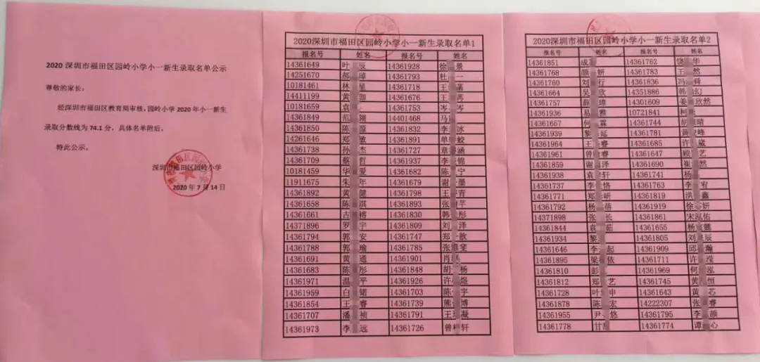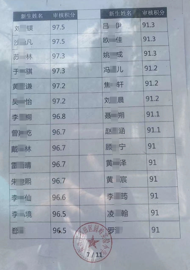 2020年福田區(qū)公辦小一新生錄取名單來了,部分學(xué)校最低錄取積分曝光